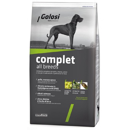 Golosi complet è l’alimento specifico per il cane adulto di qualsiasi taglia. L’alimentazione può contribuire al mantenimento di una buona condizione fisica; le carni di risultano leggere per l’apparato digerente del cane mentre il manzo dona grande appetibilità. Per la corretta motilità intestinale è preziosa l’integrazione di polpa di barbabietola, utile a nutrire le cellule intestinali. La completa integrazione vitaminico-minerale svolge inoltre un’importante azione per l’organismo contribuendo a limitare i processi di ossidazione, per un gusto a tutto benessere.