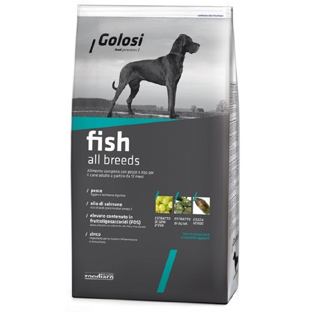 Golosi fish è l’alimento specifico per il cane adulto di qualsiasi taglia. L’alimentazione favorisce il mantenimento di una buona condizione fisica; l’inclusione di pesce è ideale per l’apparato digerente del cane favorendone la piena vitalità. L’olio di salmone è una ricca fonte di acidi grassi insaturi omega 3. La completa integrazione vitaminico-minerale svolge inoltre un’importante azione antiossidante per l’organismo contribuendo a limitare i processi di ossidazione, per un gusto a tutto benessere.