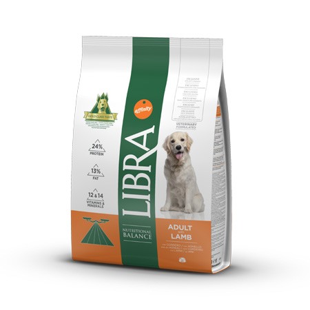 È il prodotto che offre un'alimentazione adeguata per cani adulti di tutte le taglie di età compresa tra i 12 mesi e i 7 anni di vita. Libra è un prodotto premium, creato con un perfetto equilibrio tra proteine, grassi, fibre, vitamine, minerali e la varietà dei migliori ingredienti per migliorare la vitalità e promuovere la digestione.