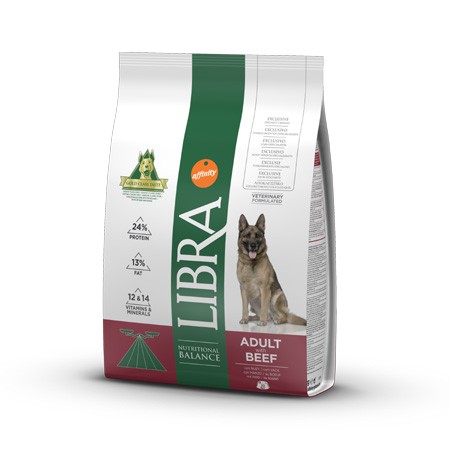 È il prodotto che offre un'alimentazione adeguata per cani adulti di tutte le taglie di età compresa tra i 12 mesi e i 7 anni di vita. Libra è un prodotto premium, creato con un perfetto equilibrio tra proteine, grassi, fibre, vitamine, minerali e la varietà dei migliori ingredienti per migliorare la vitalità e promuovere la digestione.