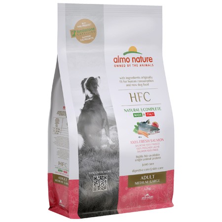 Crocchette per cani adulti di taglia media e grande (oltre 10 kg. di peso). La linea HFC è la nuova gamma delle crocchette Almo Nature che assicura qualità e trasparenza fin dall’etichetta con una breve lista di ingredienti immediatamente comprensibile. HFC garantisce un pasto appetibile e nutriente grazie alla presenza di carne fresca.