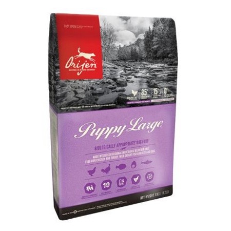 Orijen Puppy large breed, biologicamente appropriato, è un modo naturale e delizioso per assicurare al vostro cucciolo di grossa taglia salute e felicità.