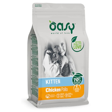 - Oasy Kitten contiene gli acidi grassi essenziali Omega-6 e -3, componenti fondamentali delle cellule, indispensabili per la crescita ottimale dei gattini. In particolare, gli acidi grassi Omega-3 favoriscono un corretto sviluppo cerebrale.