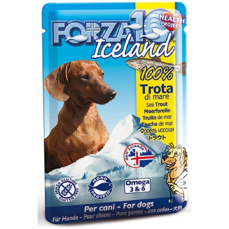 Forza 10 Iceland paté 100% alla trota è un alimento monoproteico altamente appetibile, con trota pescata in mare. Indicato per cani di tutte le razze ed età. La preziosa fonte nutritiva del pesce ad alto valore biologico in pratiche buste salva freschezza.