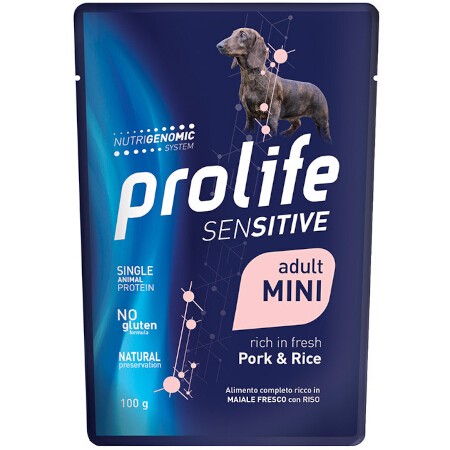 Alimento completo ricco di Maiale Fresco con Riso, specificamente formulato per il cane adulto sensibile di taglia piccola.