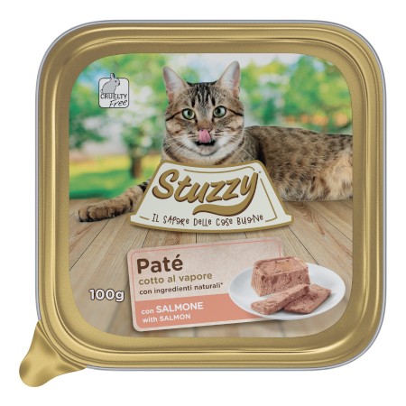 Una ricetta completa e vellutata, senza rinunciare al sapore unico del pesce. Il Paté con Salmone di Stuzzy è cotto al vapore e con ingredienti naturali scelti, per una deliziosa esperienza di gusto da regalare al tuo gatto.