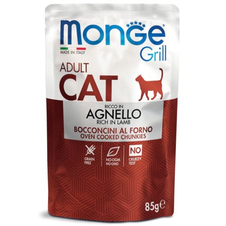 Monge Grill sono bocconcini in jelly cotti al forno e permettono al tuo gatto di essere più vicino alla sua alimentazione naturale. Le ricette Monge Grill contengono carni di alta qualità, acquistate in modo specifico per le loro caratteristiche nutrizionali. Formulazioni senza cereali, con le patate come unica fonte di carboidrati. Un prodotto ottimale per la nutrizione specifica nelle diverse fasi di età o stati fisiologici. Ideali per i gatti con appetito difficile.