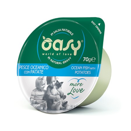 Oasy More Love Green Cup è la nuova generazione di alimento umido per gatti, in salsa naturale, per deliziare con abbinamenti di gusto ricercati e ingredienti genuini. Una linea eccellente preparata senza OGM e soia e senza alcuna sperimentazione sugli animali. Inoltre, il pesce è pescato con metodi sostenibili, nel pieno rispetto della fauna dell’oceano. Non contiene coloranti, aromatizzanti e conservanti artificiali.