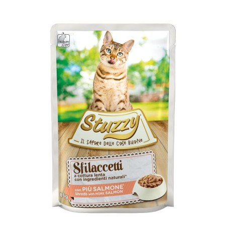 L’irresistibile gusto del Salmone e ingredienti naturali selezionati… squisita genuinità! Scopri gli Sfilaccetti con Salmone di Stuzzy, preparati a cottura lenta per regalare ogni giorno al tuo gatto tutto il gusto di un’alimentazione completa.
