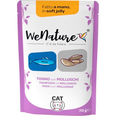 Alimento umido per gatti adulti a base di tonno con molluschi in soffice gelatina, creato con i migliori ingredienti che la natura offre, nel rispetto dell'ambiente. Formulato con materie prime selezionate: genuine, semplici e naturali. Il tuo inseparabile amico rimarrà soddisfatto dalla bontà e dal gusto.