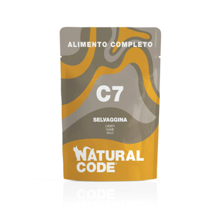 Selvaggina 68%, Minerali 1%, Zucchine 0,5%, Olio di Girasole 0,1%.