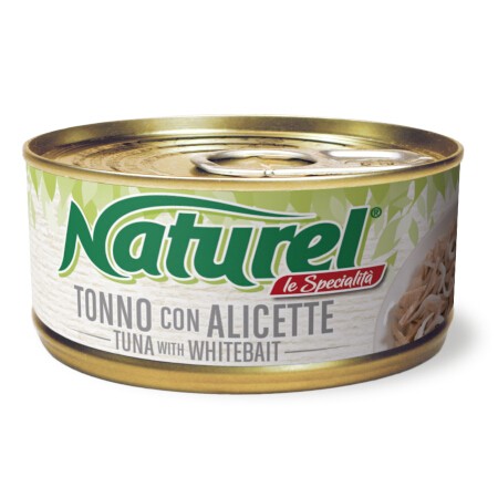 Preparato con veri filetti di tonno al naturale, di prima qualità, arricchiti con vere alicette. Il tutto semplicemente cotto al vapore e conservato in morbida gelatina. Il tonno è pescato nei mari puliti e viene lavorato fresco, senza essere mai congelato. La gelatina è realizzata col brodo di cottura che viene gelificato con fibre vegetali.