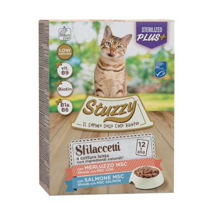 Il tuo gatto sterilizzato ama il pesce? Per lui c’è il multipack di Stuzzy con i prelibati Sfilaccetti al Salmone e gli irresistibili Sfilaccetti al Merluzzo. Tanto gusto in ricette complete, genuine e preparate con ingredienti naturali a cottura lenta.