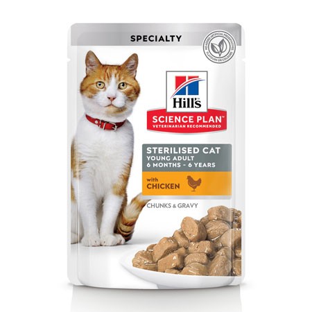 Il tuo gatto amerà il gusto di Hill's Science Plan Sterilized Cat Adult in bustina. Ha il perfetto equilibrio di gusto e nutrizione con la Formula unica della Gestione del Peso per aiutare i gatti sterilizzati a mantenersi magri. Realizzato con ingredienti di elevata qualità e facili da digeririe.