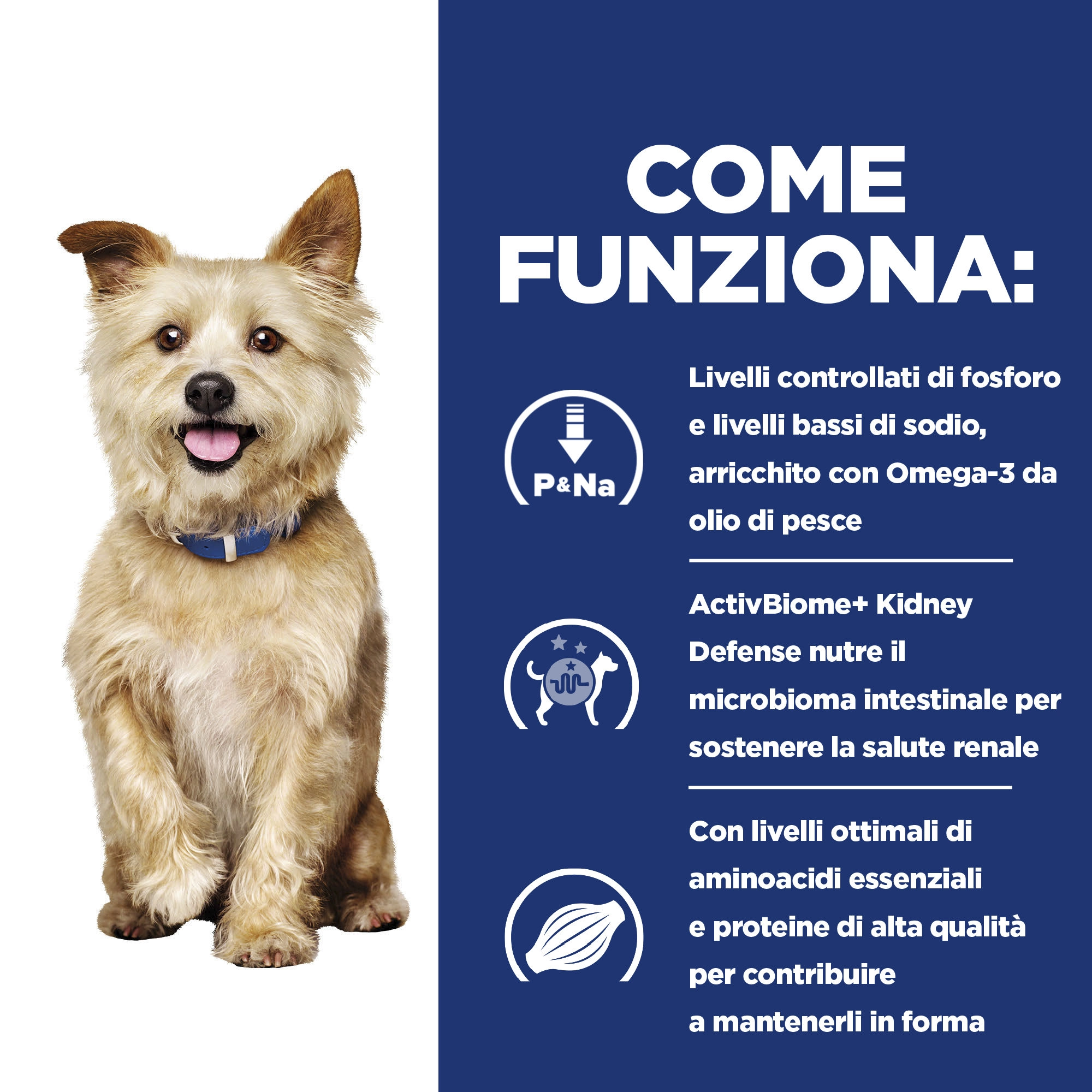 I nutrizionisti e i veterinari di Hill's hanno sviluppato la nutrizione clinica Hill's Prescription Diet k/d con ActivBiome+ Kidney Defense, una miscela brevettata di prebiotici che ha dimostrato di nutrire il microbioma intestinale per aiutare a sostenere la funzione renale.
