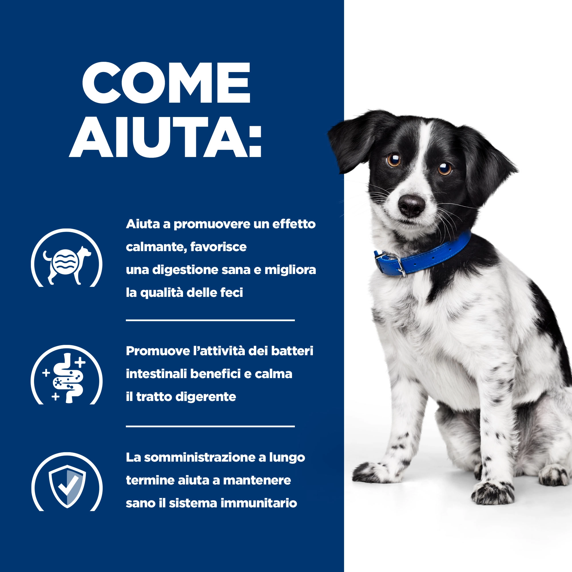 - Aiuta a promuovere un effetto calmante, supporta una sana digestione e migliora la qualità delle feci