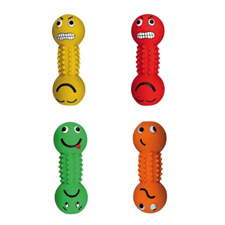 Bilanciere in latex con interno in fibre di poliestere. Se schiacciato emette uno squittio che farà sicuramente divertire il tuo cane. Disponibile in faccine e colori assortiti.