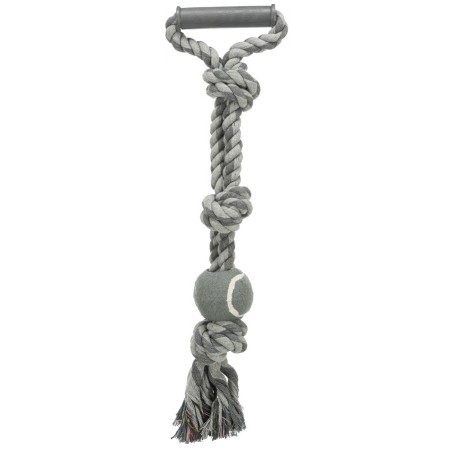 Resistente corda in cotone e poliestere con palla da tennis (senza fibre di vetro) per i momenti di divertimento del tuo fedele amico a quattro zampe, sia quando gioca da solo sia quando gioca in tua compagnia con il classico tira-e-molla. Le corde gioco Trixie aiutano a pulire i denti: mentre il cane mastica la corda, le fibre di cotone penetrano nello spazio interdentale e provvedono ad una efficace pulizia dei denti.