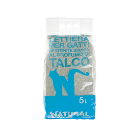 Lettiere per gatto 100% naturale agglomerante profumazione talco.