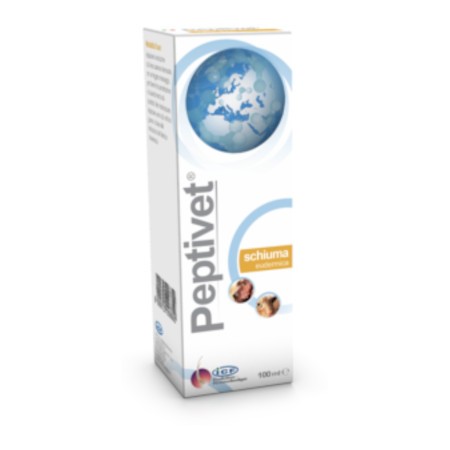 Peptivet soluzione schiuma ha attività funzionale, finalizzata ad alleviare la sensibilità cutanea e supportare il recupero della barriera idrolipidica della pelle irritata. Inoltre, grazie all’azione sinergica dei suoi componenti (AMP2041, Clorexidina digluconato e Tris-EDTA) interferisce sul metabolismo microbico.