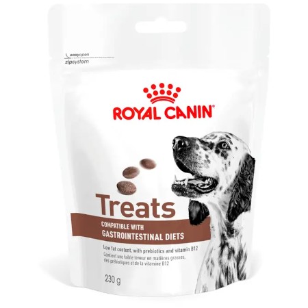 Snack studiati da Royal Canin per sostenere la salute digestiva del cane, perfetti come ricompensa delicata durante la dieta gastrointestinale.