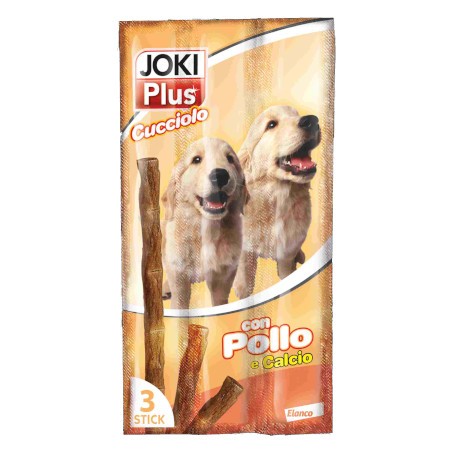 Snack per cuccioli altamente appetibile. Deliziosi bastoncini al pollo, arricchiti con calcio, adatti a cuccioli in crescita, ricchi di vitamine (A, D3, E), minerali e proteine. Confezione con 3 sticks confezionati singolarmente