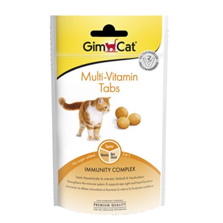 Le Multi-Vitamin Tabs di GimCat contengono tante vitamine importanti e prezioso beta-glucano. Insieme questi elementi potenziano il sistema immunitario. La taurina supporta vista e funzione cardiaca.